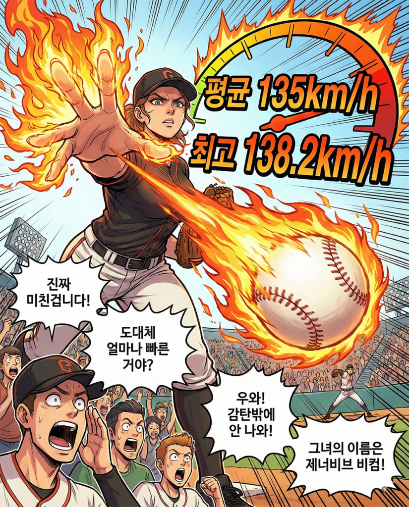 그녀의 최고구속은 무려 138.2km/h!!