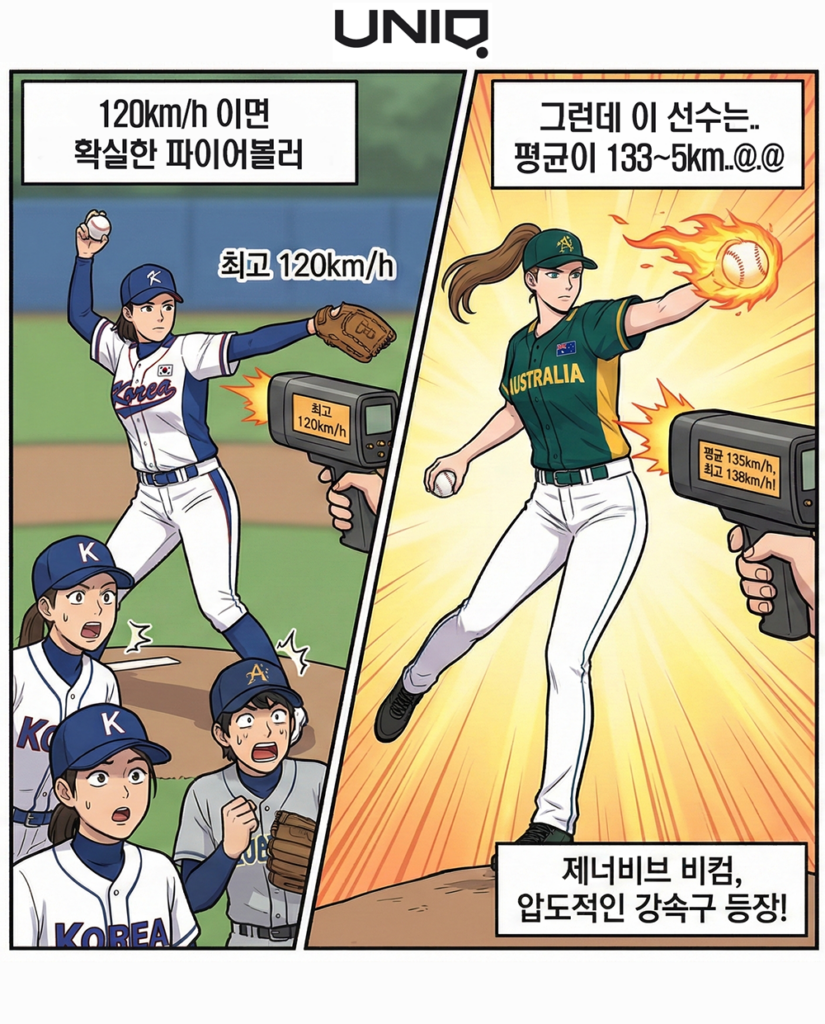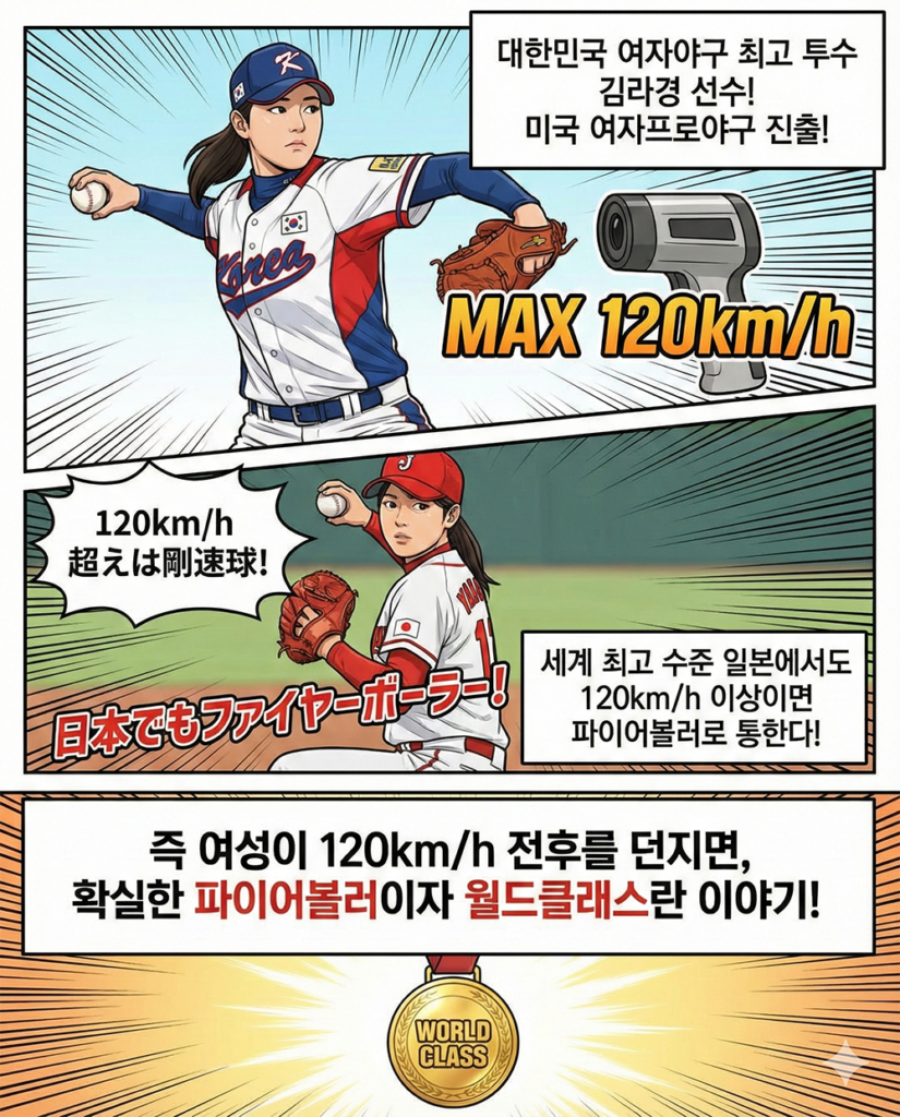 여자야구에서 120km/h만 던져도 ‘탈지구급’ 파이어볼러 대접을 받는데