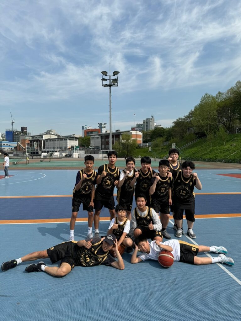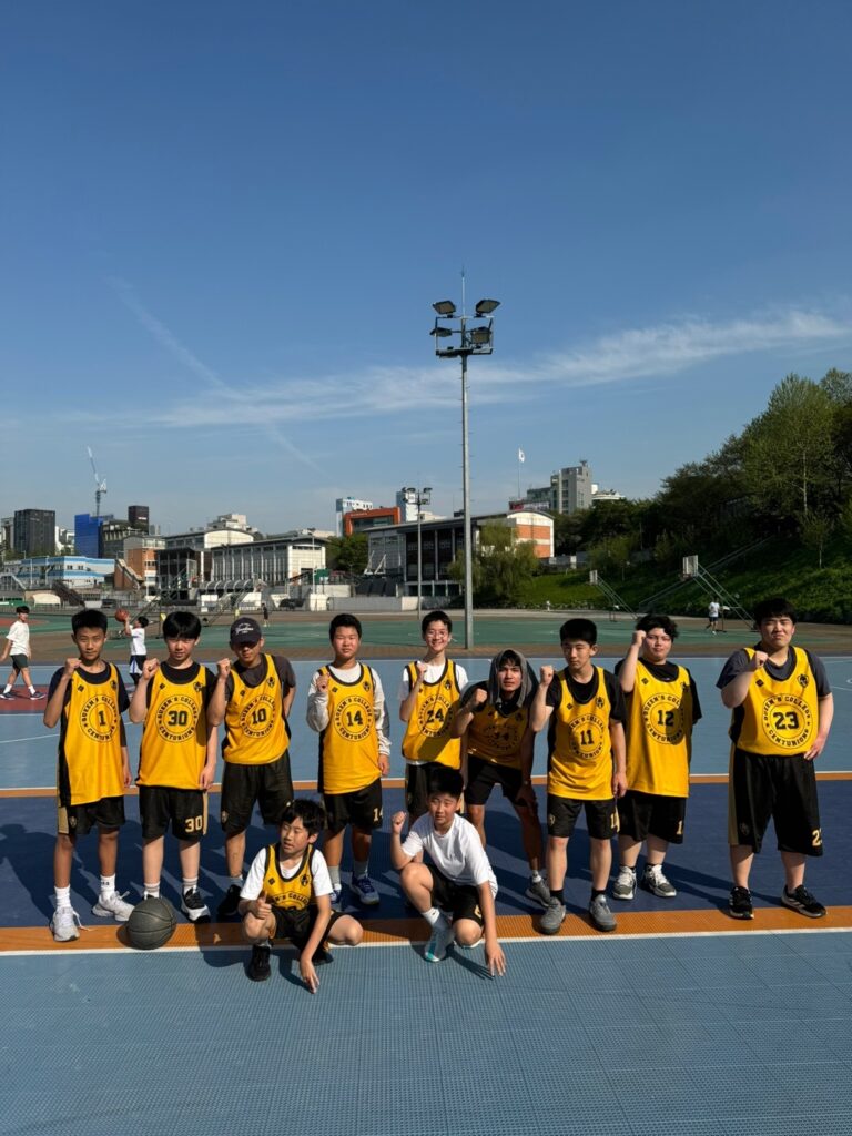 ↓퀀스칼리즈 서울 국제학교 농구팀의 양면유니폼